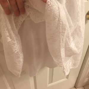 NWT- Juniors white lace strapless dress. Comes with black belt around the middle. Also trimmed in black around the chest. The dress is lined. Built in padding in the chest. Beautiful dress! Size 7/8