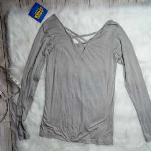Scooped neck with criss-cross detail in the front and the back.