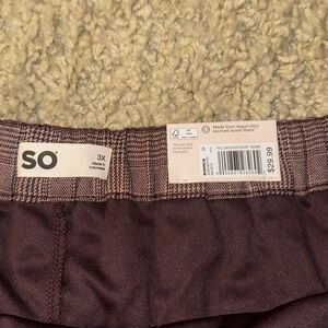NWT Juniors’ Plus Size SO Pull On Brown Plaid Pleated Skort (3X)