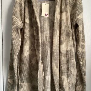 - NWT- Junior’s SO Hacci Hooded Cardigan ,camouflaged Tie Dye- Size: XS