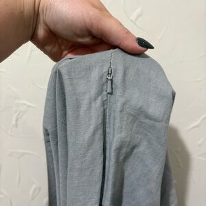 size xxl (21.5 inches pit to pit). new w tags. grey in color, small Mickey Mouse head embroidered on one pocket, sleeveless style, has double front pockets, tie detail on back of neck, zipper closure on side, linen/cotton blend.