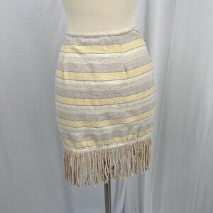 NWT Just Bee Queen Women's Mini Skirt XS Yellow Striped Classic Charlie Fringed