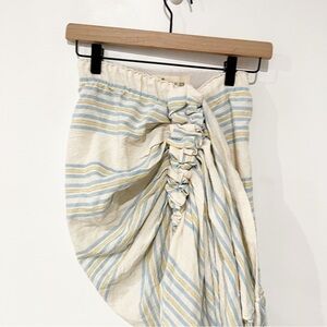 NWT Just Bee Queen Tulum Blue Medium Yellow Stripe Tassel Skirt size XS