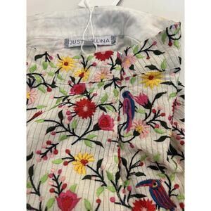 NWT Just Bellina Womens Sz X-Large Shorts Ivory Macaw Floral Cotton Embroidered