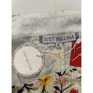 These NWT Just Bellina Women's XL shorts in Ivory Macaw Floral color are a stylish addition to any wardrobe. Made from 100% cotton chambray fabric, these shorts feature embroidered accents, a high rise, and a side zip closure for comfort and convenience. Perfect for traveling or casual occasions, these lightweight and lined shorts are versatile for all seasons, making them a must-have for any fashion-forward woman looking to add a touch of nature-inspired style to her outfit.