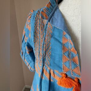 NWT Just Bellina cotton embroidered and beaded tassel top. Vacation style top S