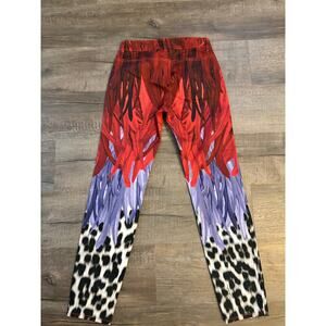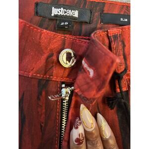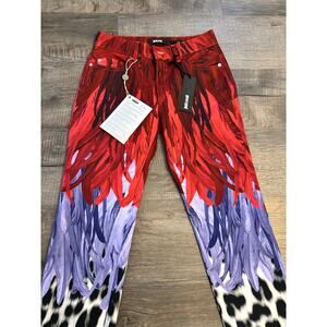 NWT Just Cavalli Feather Leopard Print Skinny Jeans Red Purple Y2K Size S 25.5