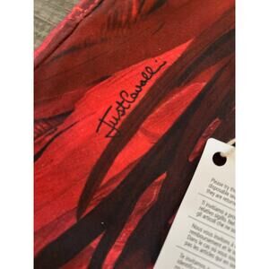 Just Cavalli Skinny Leg Jeans, a striking fusion of editorial luxury and fearless street style. These designer jeans feature a bold feather-inspired red and purple print cascading into a fierce black-and-white leopard pattern, embodying the signature Cavalli flair for dramatic detail and statement-making design.