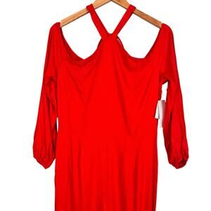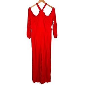 NWT Just Fab Cold Shoulder Wide Leg Halter Jumpsuit in Goji Berry Red Sz Large