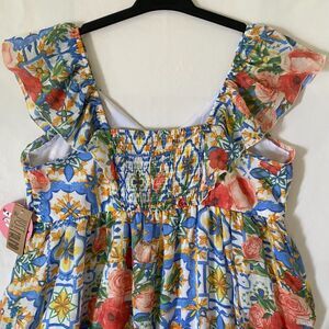 NWT Just Found Floral Dress Multicolor Cap Sleeves Ruffle Hem V-Neck Size XL