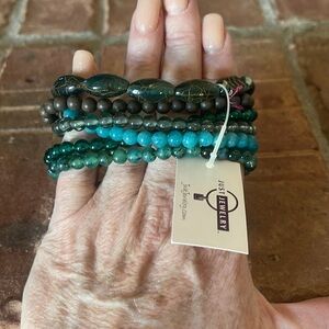 NWT Just Jewelry Teal Beaded Bracelet Set