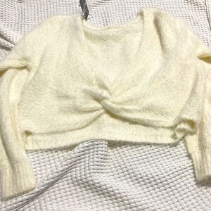 NWT- Just Polly - L. Cream super soft fuzzy sweater with open/low twist back, approx 22” armpit to armpit & 19.5” length
