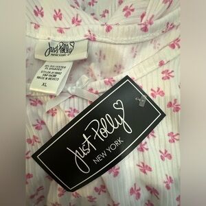NWT Just Polly Novelty Print Dainty Pink Bow Coquette Crop Top Size XL