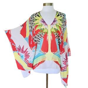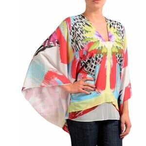 Just Cavalli Women's Silk Multi-Color Dolman Sleeve Blouse Top Poncho
