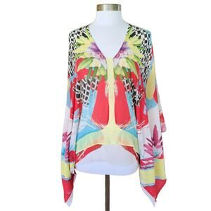 NWT Just Roberto Cavalli Silk Multi-Color Caftan Top Poncho Size Medium