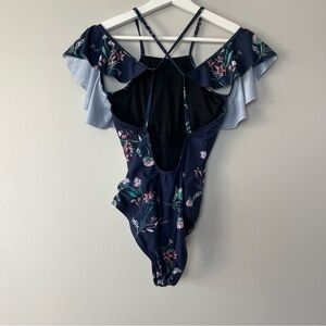 NWT JustFab Cold Shoulder One Piece Navy Floral Swimsuit Small