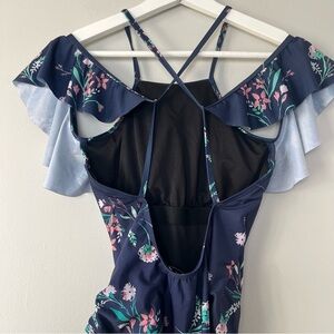 JustFab Cold Shoulder One Piece Navy Floral Swimsuit
