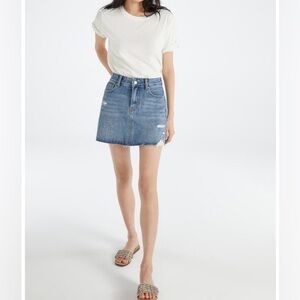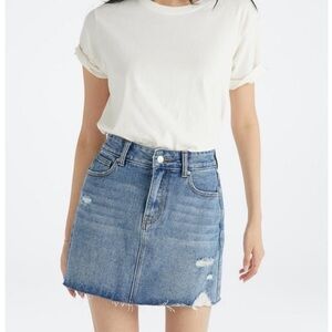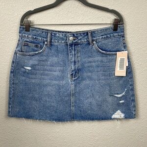NWT JustFab Dylan High Rise Vintage 5 Pocket Skirt Denim Jean Mini Distressed 32