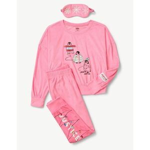 3 Pieces Pink Long Sleeve Top, Jogger & Eyemask, Pajama Set.