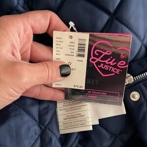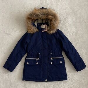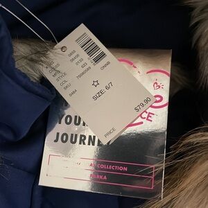 (NWT) Justice Big Girl’s Navy Hooded Parka Jacket, Size: (6/7)