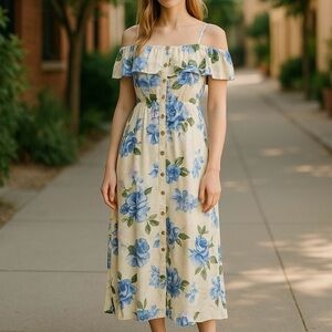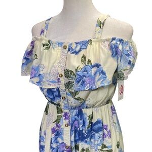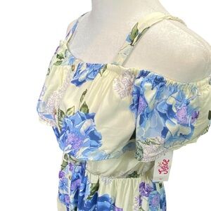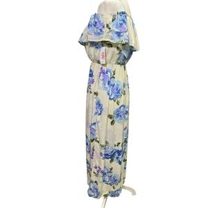 NWT Justice Juniors sz 14 Blue Floral Midi/Maxi Dress off shoulder lined party