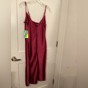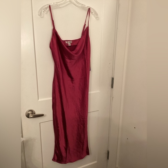 Vibrant slip dress with a draping cowl neck and spaghetti straps 100% polyester