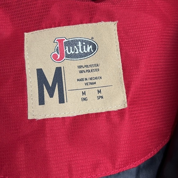 NWT Justin Zip Front Hooded Rain Red Jacket Size Medium