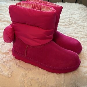 NWT Ugg K Bailey Bow children’s boots. Size 4, bright pink, ugh print fabric, fleece lined. Nice boot! No box.