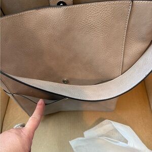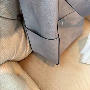 NWT K. Carroll vegan shoulder bag. Grey with silver hardware. Pockets on each side of the bag’s exterior and each side of the bag’s interior. One interior pocket has slots for credit cards.