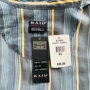 NWT KAID Button Front Men’s Shirt Silk Shirt Blue Yellow Stripes All Over Shirt