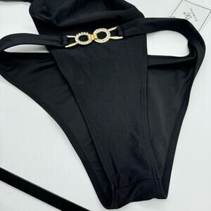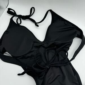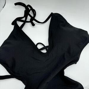 NWT KAMONI Blk Plunge Belted Cut Out Back Tie High Cut Cheeky One Pc. Swimsuit M
