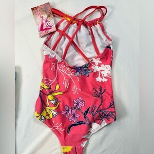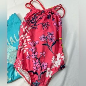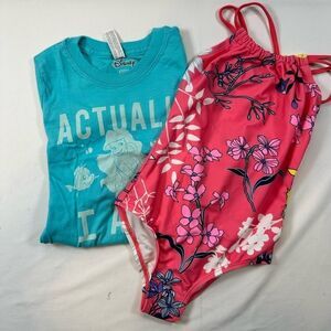 NWT KANU SURF Girls Pink Floral One Piece Swimsuit & Disney Mermaid Tee- Size 6X