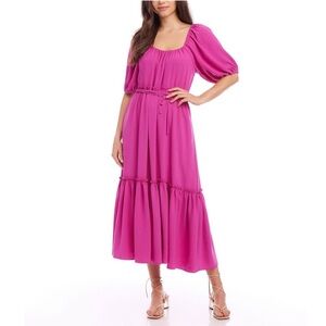 NWT KAREN KANE Short Sleeve Removable Tie Belt Flowy Ruffle Layered Dress.