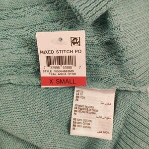 NWT KAREN SCOTT Textured Patchwork Sweater XS(0-2) Teal Aqua Cotton V-neck