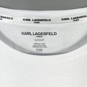 NWT KARL LAGERFELD Embellishment White Silver Crew Neck Short Sleeve T-Shirt Style L4XHA070 SMALL