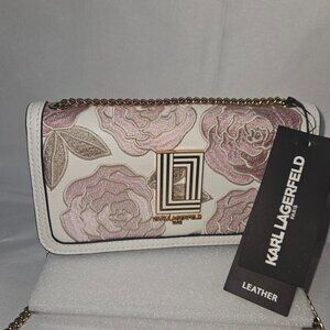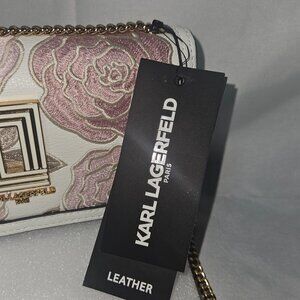 NWT KARL LAGERFELD PARIS Women's Kosette Embroidered Leather Shoulder Bag.