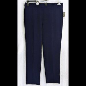 NWT KASPER Size 1X Navy Blue Stretch Pull-On Career Pants, Inseam 30