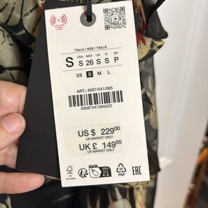 NWT KATE MOSS FOR ZARA black silk floral long dress size small & medium