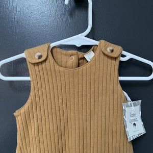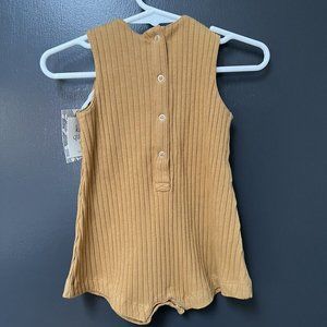NWT KATE QUINN Tan Ribbed Button Shortie Romper Boys Girls 3-6 Mo