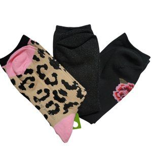 NWT KATE SPADE 3 Pairs Crew Socks Floral Leopard Logo Sparkle