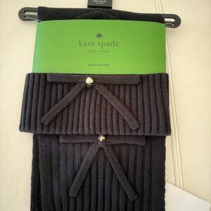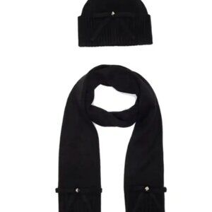 NWT KATE SPADE BOW BEANIE AND SCARF SET BLACK