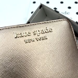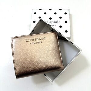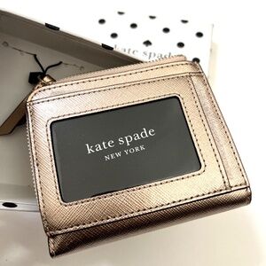 NWT KATE SPADE Cameron Metallic Rose Gold Wallet L-Zip Boxed 3.7"x4.3" Bifold