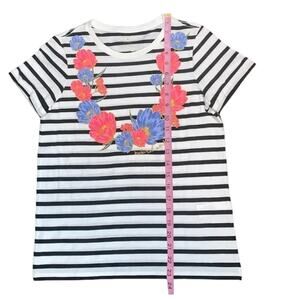 Kate Spade, new with tags Natural Wonder Tee. A string of flowers adorns this classic striped tee–reminding us to find beauty in the simplest things. A floral and "natural wonder" graphic, cuffed short sleeves, crew neckline, short sleeve tee, style # njmu8618. No holes, stains, or piling. Excellent condition. Smoke free home. Stock photo to show fit only.