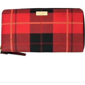 NWT! Kate Spade Neda Newbury lane printed plaid red wallet. Several card slots and one zippered interior pocket, one exterior slip pocket.