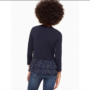 NWT KATE SPADE Top Star Print Tiered Ruffle Peplum 3/4 Sleeve in Navy Size M
