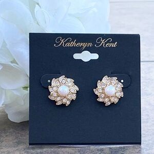 NWT KATHERYN KENT GOLD TONE PEARL AND CUBIC ZIRCONIA EARRINGS