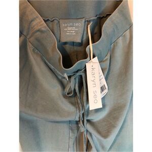 NWT KAYRYN SEO Sweat Pants Wide Embroidered Legs in Sage Green Light & Blue XL