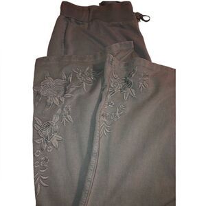 This super comfortable and adorable sweat pants heave beautiful embroidered design on both legs. Soft quality material. Wide legs.