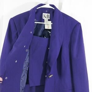 From Stella Louise for KB comes this terrifically hued skirt and jacket, blazer suit set in violet purple! The jacket, blazer, features a single rhinestone embellished button front and faux pockets! Shoulder pads, fully lined in matching poly satin! The skirt, also fully lined, has a back zipper and is a straight, pencil style! It also includes a removable buttons-,on "top" inset, for a 3 piece look! A beautiful suit set! Size 20W, ***Brand NEW! New WITH Tags, and Guaranteed Superb by Lily @HauteClub!*