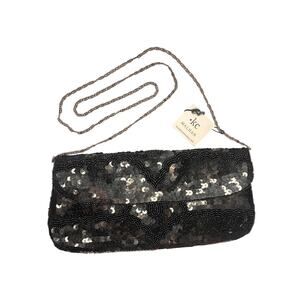NWT KC Malhan black sequin handbag purse. Shoulder bag with strap and clutch
